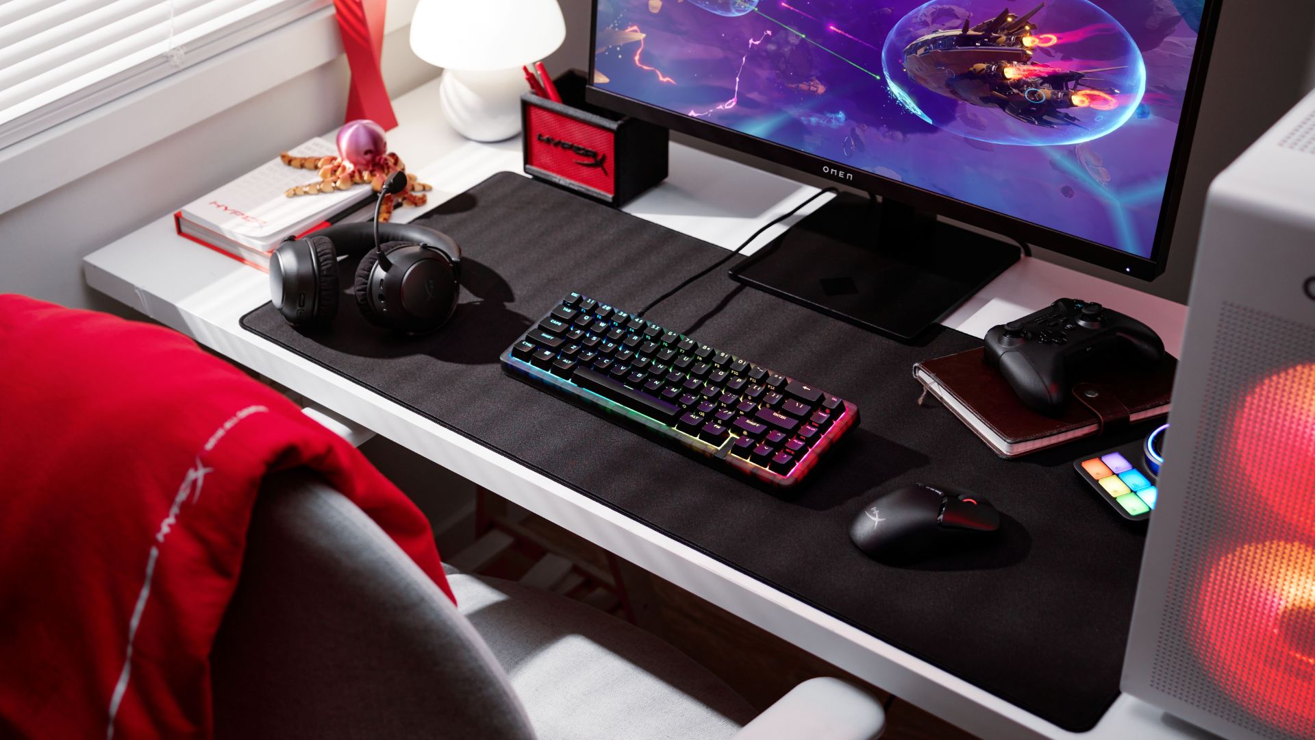 Součástí výbavy je individuální RGB podsvícení kláves s více světelnými efekty, které lze přizpůsobit pomocí softwaru HyperX NGENUITY. Ten umožňuje vytvářet vlastní světelné profily, upravovat efekty nebo nastavovat chování jednotlivých kláves.