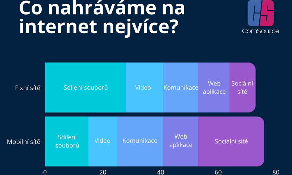 Při posuzování toku dat v rámci internetu bývalo běžné zaměřovat se na parametry stahování obsahu (download). Tím, že se stále více uživatelů internetu stává zároveň tvůrci obsahu, je důležité hodnotit i nahrávání obsahu (upload). Zatímco u mobilních dat jde zejména o nahrávání na sociální sítě a o komunikaci, u fixních sítí, jako je domácí wifi, je v popředí sdílení souborů a nahrávání videí. Vyplývá to z analýzy Sandvine zveřejněné českou společností ComSource, která se zaměřuje na kyberbezpečnost, síťovou infrastrukturu a datovou analytiku.